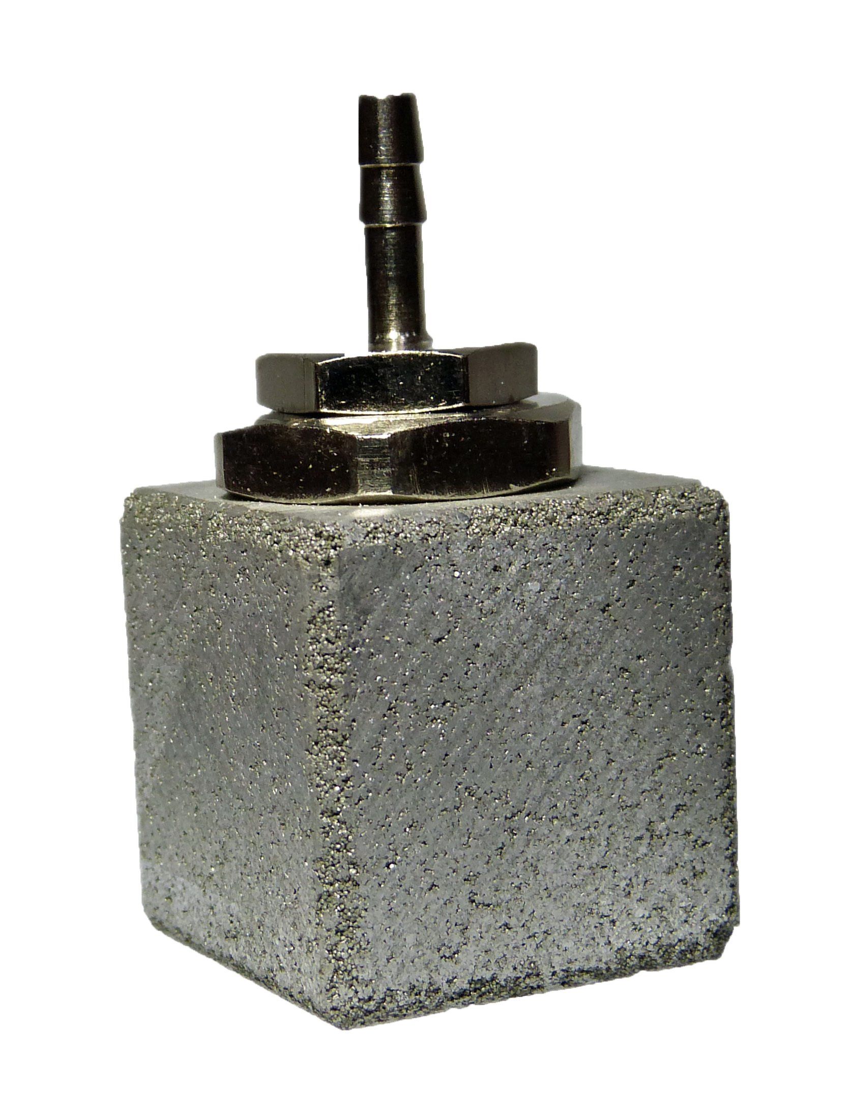 Poranit P5 Aqua ist ein sehr poröser Werkstoff aus Aluminium mit einer Reinheit von 99,6 % (Dichte: 1,83g/cm³). Poranit Sprudler sind hochfest und geben ein hervorragendes Blasenbild ab. Selbst als Ausströmer von Sauerstoff werden sie von Profis geschätzt und eingesetzt. Unsere Ausströmer sind korrosionsfest. Biogene Anhaftungen werden durch eine 15 minütige Erwärmung auf 150 °C zersetzt und können mühelos durch eine Bürste entfernt werden. Der Ausströmer ist dann gleichzeitig wieder keimfrei.
